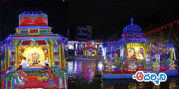 స్వర్ణాలంకార భూషితులై.. విద్యుత్ దీపకాంతుల్లో ధగధగలాడే గంగాదేవి సమేత పరమేశ్వరుడు, మరోవైపు పార్వతీదేవి… నారద పుష్కరణి చుట్టూ వందలాదిగా భక్తజనం… మార్మోగుతున్న శివ నామ స్మరణ.. అందమైన తెప్పలపై ఆశీసునులై పుష్కరణిలో విహరించే స్వామి అమ్మవార్లను చూడటానికి భక్తులకు రెండు కనులు చాలలేదు.