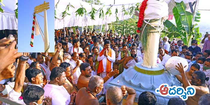 ఆ తరువాత భక్తకన్నప్ప ఆలయానికి ఎదురుగా ఉన్న ధ్వజస్తంభానికి కొడిని ఎగురవేసి శాస్త్రోక్తంగా ధ్వజారోహణ కార్యక్రమం నిర్వహించారు. ఈ వేడుకలు తిలకించడానికి వందలాది మంది భక్తులు భక్తకన్నప్ప కొండపైకి తరలి వచ్చారు.